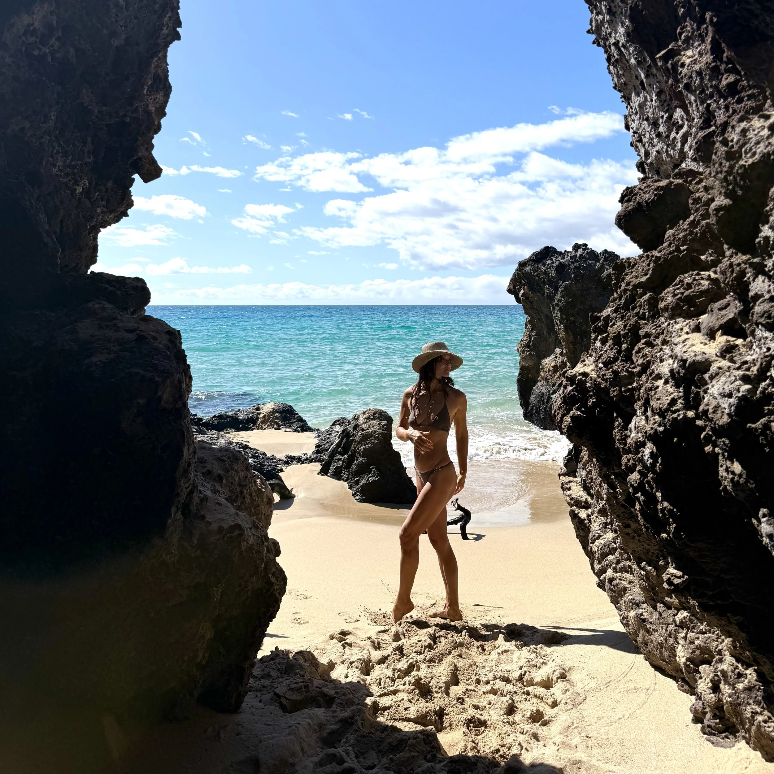 It’s not a comfortable rock, it’s a bit jagged. It’s not insurmountable, but it’s not your casual walk on the sand, you almost break your flip flops, slipping on the edge of a lava rock.